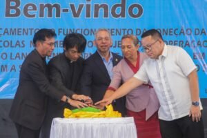 Likisa, 23 Agostu 2025 – Ministru Transporte no Komunikasaun, Eng. Miguel Marques Gonçalves Manetelu, akompaña husi Ministra Edukasaun, Dulçe de Jesus, Sekretáriu Estadu Komunikasaun Sosiál, Expedito Dias Ximenes no Diretór Interinu Koléjiu Santo Inácio Loiola, Kasait, Padre Peter Yoshitaka Ura.SJ, Lansa Koneksaun liña internet ba eskola lima iha teritóriu Timor-Leste, no lansamentu Jornál Parede Dijitál,serimonia…